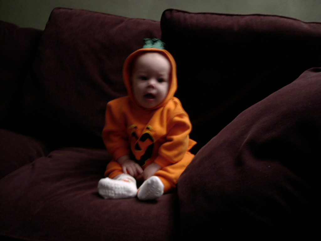 Birth Two Months Seven-Nine Months After seven months it's Halloween 2002 and I've almost grown up. Life is good, but my parents dressed me up in this pumpkin costume.